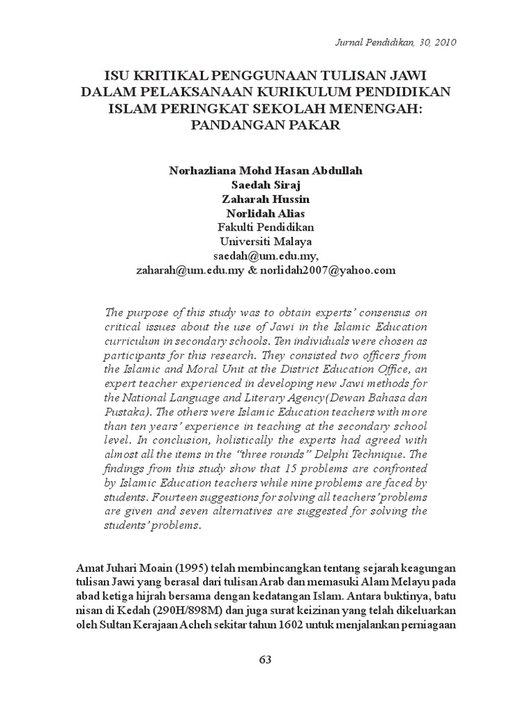 Pdf Amalan Pengajaran Jawi Dalam Pendidikan Masa Kini Suatu Tinjauan